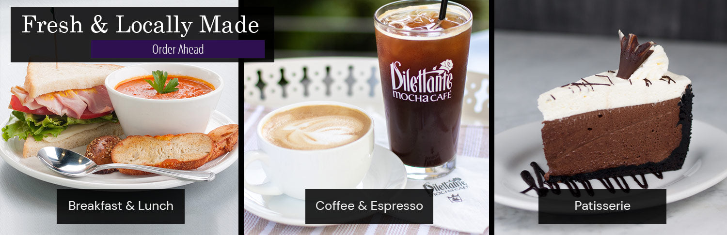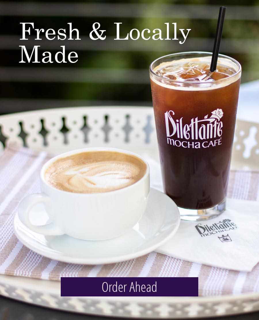 Cakes, French patisseries, chocolates, and prepared meals are all made fresh for our Mocha Café locations. Dilettante’s talented staff of pastry chefs, chocolatiers, and baristas ensure every beverage and dish is quality-made with care.